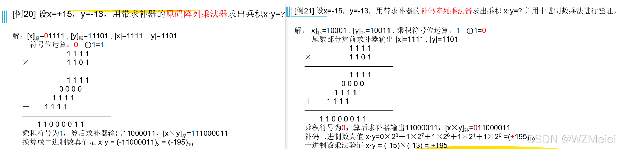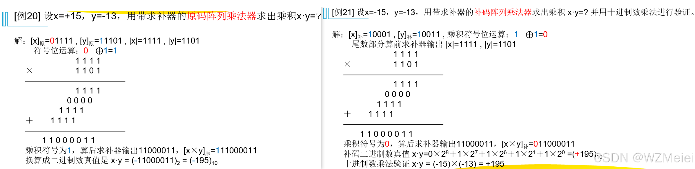 | 维度 | 原码阵列乘法(例 20) | 补码阵列乘法(例 21) |