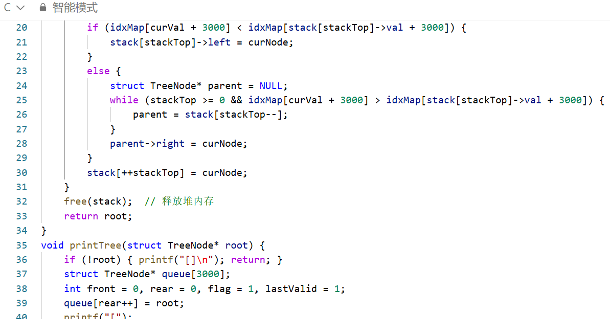 彻底规避栈溢出风险:全程无递归,函数调用栈仅 1 层;用于记录节点的栈结构分配在堆内存(而非系统栈),堆空间远大于系统栈,完全适配题目 3000 节点的最大输入规模,解决了递归版链式树场景下的栈溢出问题。