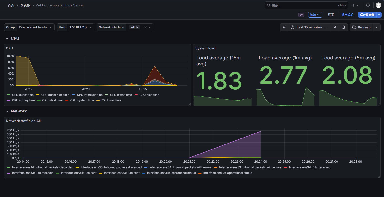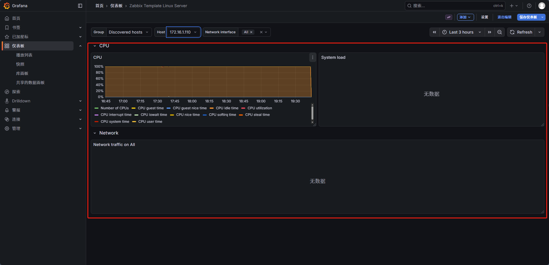 可以看到CPU的idel已经将其他值覆盖没了,平均负载,网络带宽也是没有数据的