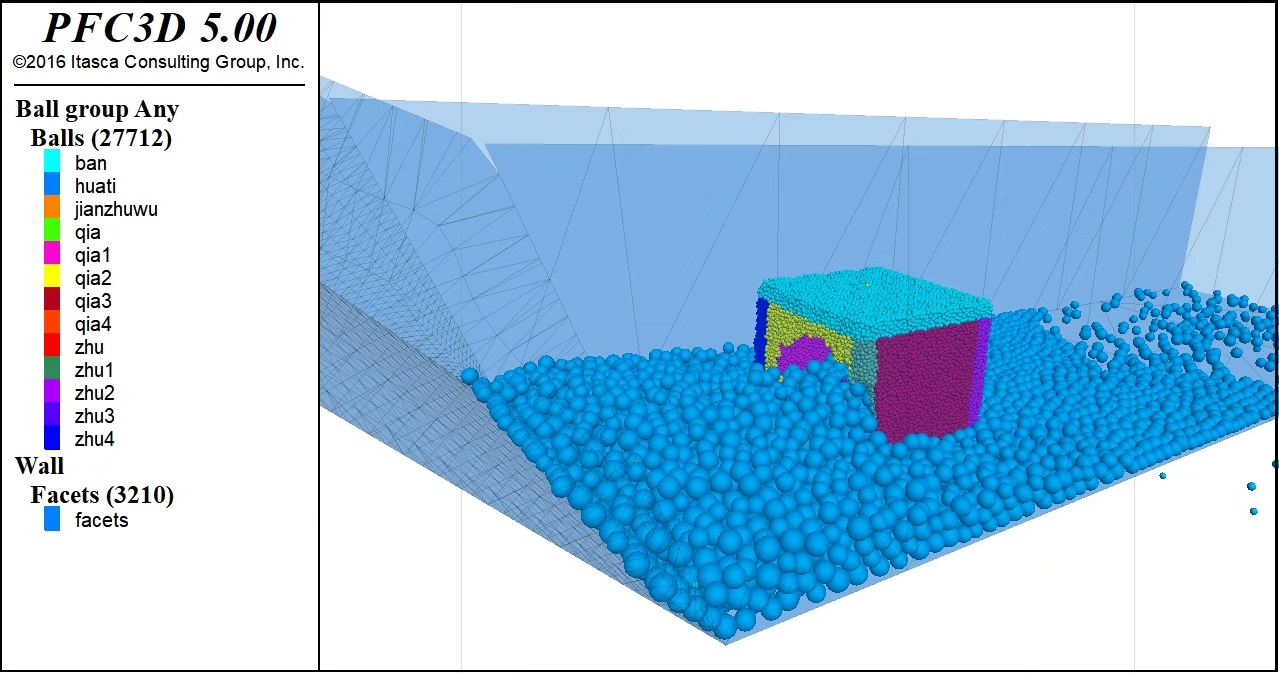 PFC3D5.0颗粒流『滑坡致灾』『建筑物易损性』完整代码(附相关参数定义及分析函数) 该代码包括: (1)完整代码及部分注释,可根据理解自行修改参数,点击运行即可得到结果,无需调试,可以直接使用,也可供参考学习; (2)滑坡建模,建筑物建模,滑坡冲击力监测,建筑物位移监测,建筑物损伤程度,科研常规分析信息俱全。 (3)犀牛软件已绘制可使用的三维网格图形。 代码部分详细信息: (1)滑坡尺寸100m×50m×100m,建筑物尺寸10*10*10m,可修改,提供; (2)平行粘结模型模拟建筑物强度,建筑物由支柱,楼板,墙体构成,可对每个部件继续详细分析; (3)检测滑坡位移,速度,建筑物偏移量,滑坡冲击力,建筑物损伤程度代码俱全,可直接使用 附图:模型侧视图,受灾后结果图,支柱破坏情况图,对比验证图,支柱所受冲击力分析图,建筑物破坏阶段分析图,建筑物易损性曲线图及对比。