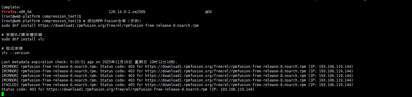 体验感受:添加第三方仓库的过程简单直接,DNF能够很好地处理多个软件源之间的依赖关系。安装VLC后,系统自动创建了桌面快捷方式,文件关联也正确设置,用户体验连贯自然。