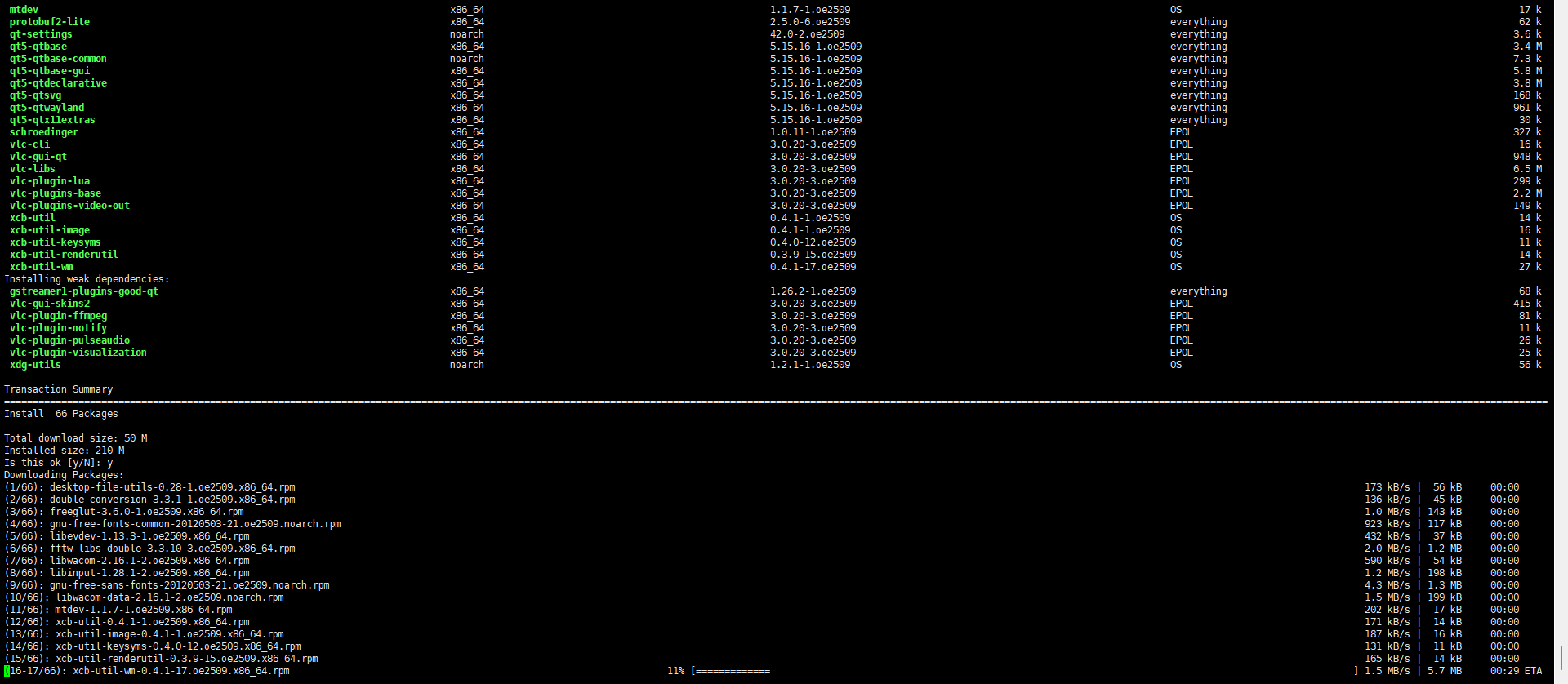 体验感受:DNF的搜索功能响应迅速,搜索结果准确。安装过程中的依赖解析自动完成,用户无需手动处理复杂的依赖关系。下载速度也令人满意,从官方仓库下载软件包基本能达到带宽的满速。