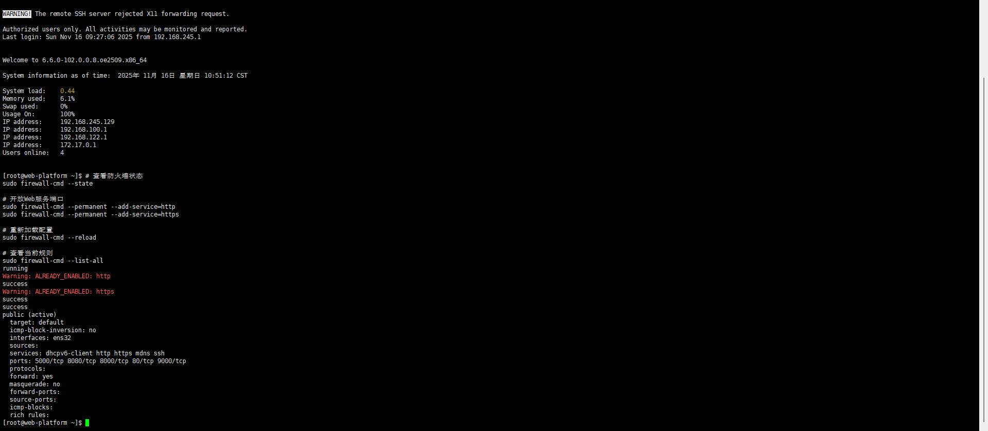体验感受:firewalld的配置语法直观易懂,服务预定义规则完整。配置变更立即生效,无需重启服务。对于不熟悉命令行的用户,还可以使用图形化工具进行配置。