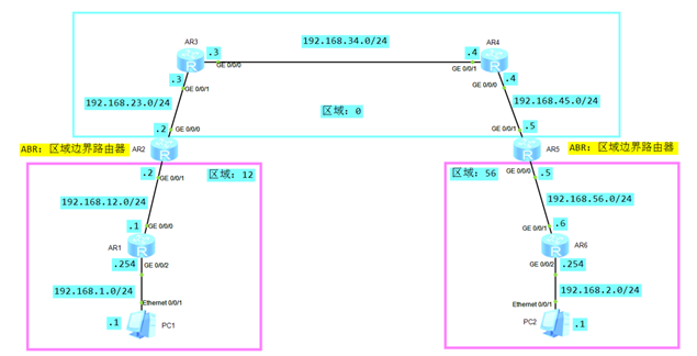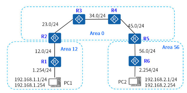 [R6-ospf-1-area-0.0.0.56]network 192.168.2.0 0.0.0.255