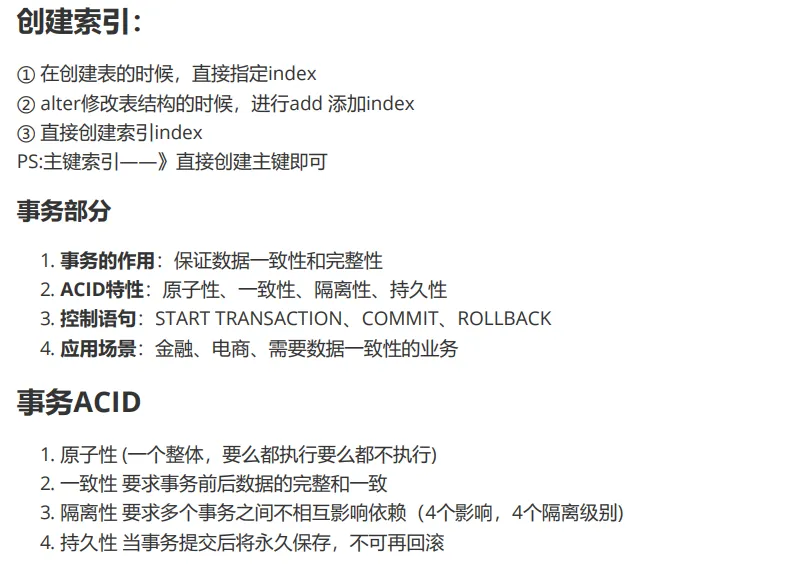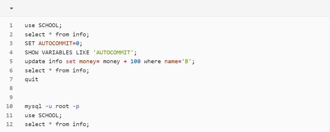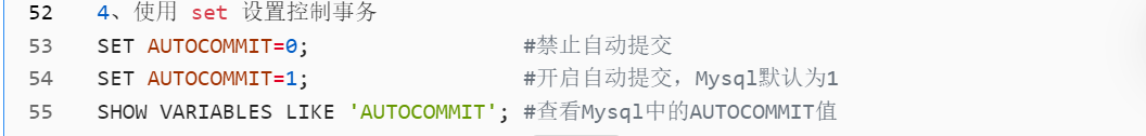 - BEGIN 或 START TRANSACTION:显式地开启一个事务。