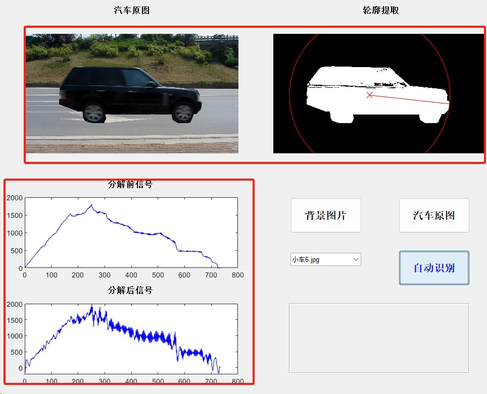 68.基于matlab的小波分解子模式和盒维数的车型识别可以选择不同车型,包括小车、中车、大车。 GUI可视化界面操作,已包括多种图片。 程序已调通,可直接运行。