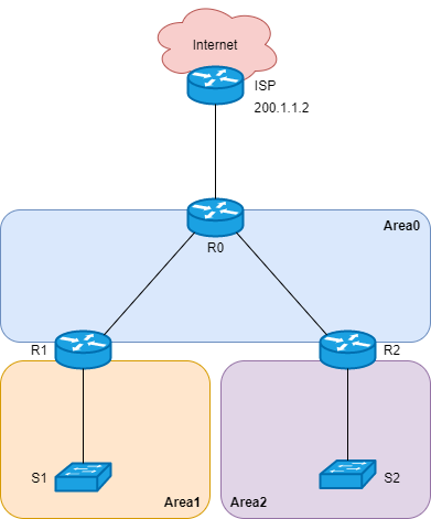 R0 是出口路由器,连着一条 Internet 出口线路。为了让内网用户可以访问 Internet ,需要下发一条默认路由,让内网用户 Internet 流量到达 R0 ,再转发到 Internet 。R0 可能已经有一条静态默认路由:ip route-static 0.0.0.0 0.0.0.0 200.1.1.2 ,但是 OSPF 域内的路由器是看不到的。如果使用路由引入把这条路由引入 OSPF ,可能会引发环路的风险,默认路由是不会被引入的。