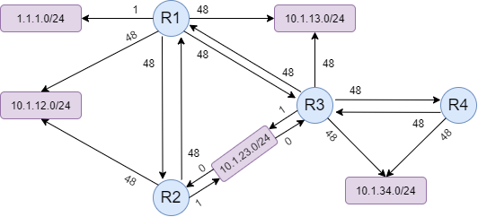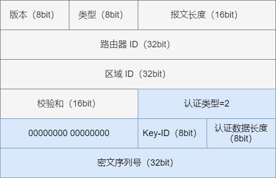 R2-ospf-1-area-0.0.0.1\]**nssa default-route-advertise** 配置完后,R2 会向 NSSA 通告一条 Type-7 LSA 描述的默认路由,这条默认路由只会在 NSSA 内传播,不会被 ABR 转成 Type-5 LSA 进入 Area0 。当然,仅当 NSSA 的 ASBR 在自己的路由表中,已经存在一条默认路由时,这条命令才生效,否则默认路由不会导入。 ##### 5、在 Totally NSSA 发布默认路由 Totally NSSA 禁止 Type-3 、Type-4 、Type-5 LSA 在区域内泛洪,同时区域的 ABR 会自动下发一条默认路由,使用 Type-3 LSA 描述,这样 NSSA 内的路由器可以到达其它区域或域外的网络。 #### 报文认证  R1 和 R2 连接在同一台二层交换机上,接口已经启动 OSPF ,并形成邻接关系。如果攻击者在交换机上接入一台非法路由器 X ,也在接口启动 OSPF 。R1 和 R2 通过 Hello 报文发现 X ,并和 X 建立邻接关系。然后,X 向 OSPF 网络导入大量垃圾路由,让整个 OSPF 的路由计算发生问题,网络数据不能正常转发到目的地。 为了避免类似问题,OSPF 设计了**报文认证** 功能。OSPF 报文的头部中,有几个和认证相关的字段,用于报文的认证功能。OSPF 有三种认证方式:**空认证** ( Null Authentication )、**简单口令认证** ( Simple Password )、**密文认证**( Cipher Authentication )。对应 " 认证类型 " 字段值的 0 、1 、2 。  ##### 1、空认证 默认情况下,OSPF 接口的认证方式是**空认证**,也就是说,对接口的 OSPF 报文不做认证,认证类型字段值为 0 。 ##### 2、简单口令认证 **简单口令认证**,又叫做明文认证,认证数据字段中有一个明文口令,用来认证 OSPF 的报文收发。其实这种认证方式不安全,只要可以对网络环境进行抓包,就可以分析报文内容,直接看到明文口令。认证类型字段值为 1 。 ##### 3、密文认证 **密文认证**,OSPF 报文就不是包含明文口令,而是包含一个哈希( Hash )值,这个值是把配置的口令等内容,经过 MD5 算法计算的结果。MD5 算法是一种理论上不可逆的散列算法。即使对 OSPF 报文抓包,也无法对哈希值反推明文口令,所以这种认证方式更加安全。  采用密文认证,报文格式也发生了变化。认证类型字段值为 2 ,表示密文认证方式,其它字段描述如下: * **Key-ID**( Key-Identification ):口令标识。如果两个路由器都启动了报文认证,那么双方的 Key-ID 和口令必须一致。 * **认证数据长度**( Authentication Data Length ):把口令使用散列算法进行计算,得到的数据追加在 OSPF 报文尾部,不在 OSPF 报文头部中,也并不当作是 OSPF 协议报文的一部分,报文头部的 " 报文长度 " 字段值未包含认证数据长度," 认证数据长度 " 字段就表示这个认证数据的长度。 * **密码序列号**( Cryptographic Sequence Number ):一个持续递增的序列号,防范 OSPF 报文的重放攻击。在 Broadcast 网络中,非法路由器抓到 OSPF 报文,改成自己伪造的 OSPF 报文,伪造报文使用抓包报文中认证的相关内容,伪装成合法的 OSPF 邻居。由于这个字段的值,只增不减,当收到 OSPF 报文的密码序列号等于或小于目前的序列号时,路由器就认为是重放攻击报文,于是将其丢弃。 #### 转发地址 在 OSPF 的 Type-5 LSA 和 Type-7 LSA 中有一个特殊的字段:**转发地址**( Forwarding Address ,FA ),FA 是用来避免次优路径问题的。  R1 、R2 、R3 三台路由器连接在同一台二层交换机上,三台路由器的接口 IP 地址都在相同网段,R1 和 R2 是 OSPF 路由器,都在 G0/0 接口启动了 OSPF ,而 R3 没有运行 OSPF ,只是和 R1 通过 RIP 交互路由信息,R3 把 3.0.0.0/8 路由通过 RIP 通告给 R1 。为了让整个 OSPF 网络都能学到 3.0.0.0/8 路由,R1 将 RIP 路由引入 OSPF ,使用 Type-5 LSA 在整个 OSPF 域内泛洪。域内的路由器去往 3.0.0.0/8 时,会先把数据包转发到外部路由的 ASBR ,也就是 R1 。比如 R4 发送数据到 3.0.0.0/8 网段,先将数据包转发给 R2 ,R2 转发给 R1 ,R1 再转发给 R3 。这里发现,数据包没必要经过 R1 转发给 R3 ,这就是次优路径。 OSPF 使用 FA 字段,解决次优路径问题。只有 Type-5 LSA 和 Type-7 LSA 有 FA 字段,类似外部网络出口的概念。路由器使用 Type-5 LSA 计算路由时,会根据 Type-5 LSA 的链路状态 ID 和 LSA 的网络掩码进行与运算,得到路由的目的网络地址和掩码。另外,路由器还会检查 ASBR 的可达性,如果 ASBR 不可达,那不会使用 Type-5 LSA 计算路由,只有 ASBR 可达时,这条 LSA 才是有效的。如果 LSA 的 FA 为 0.0.0.0 ,那么到达目的网段的数据包会发往 ASBR 。如果 FA 不是 0.0.0.0 ,那么路由器会把到达目的网络的数据包发往这个 FA 。这时路由器会查询到达 FA 的路由,如果有匹配 FA 的路由,就使用这个 FA 的下一跳作为这条外部路由的下一跳地址。如果没有匹配的路由,那么就不会用这条 Type-5 LSA 来计算路由。 我们再来看看 R1 生成的 Type-5 LSA ,FA 为 R3 的接口地址 192.168.123.3 ,因为 R1 自己到达 3.0.0.0/8 的下一跳就是 192.168.123.3 。 R2 收到这个 Type-5 LSA 后,进行外部路由计算。它发现 FA 不是 0.0.0.0 ,于是查询到达 FA( 192.168.123.3 )的路由,发现自己的直连路由可达,因此把 3.0.0.0/8 加载到路由表时,下一跳设置为 192.168.123.3 。这样,R4 发往 3.0.0.0/8 的数据包,转发到 R2 时,会直接转发给 R3 ,而不用从 R1 绕一下。 通常 Type-5 LSA 的 FA 字段值为 0.0.0.0 ,当满足特定条件时,FA 字段才设置成非 0.0.0.0 的值。条件如下: * 引入外部路由的 ASBR 在连接外部网络的接口启动了 OSPF ; * 这个接口没有配置为 Silent-Interface ; * 这个接口的网络类型是 Broadcast 或 NBMA ; * 这个接口的 IP 地址在配置的 network 命令范围内。