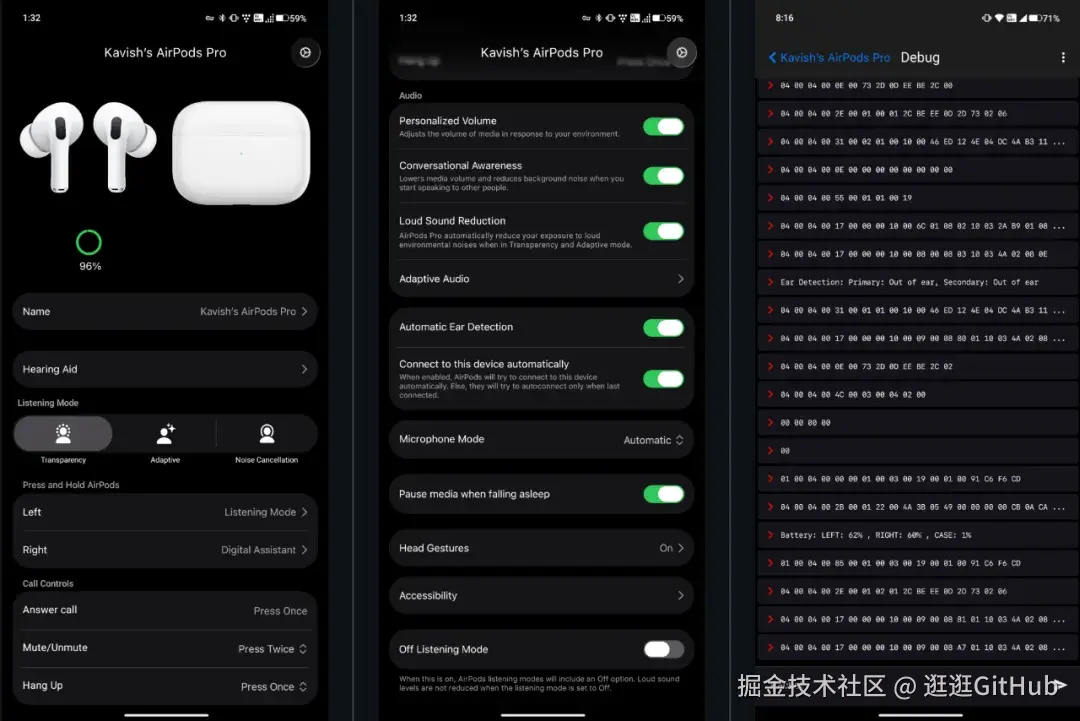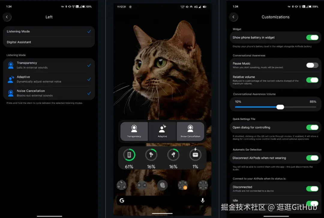 LibrePods 能在 Android 上实现 AirPods 的原生级体验,比如降噪切换、入耳检测、电量显示等:
