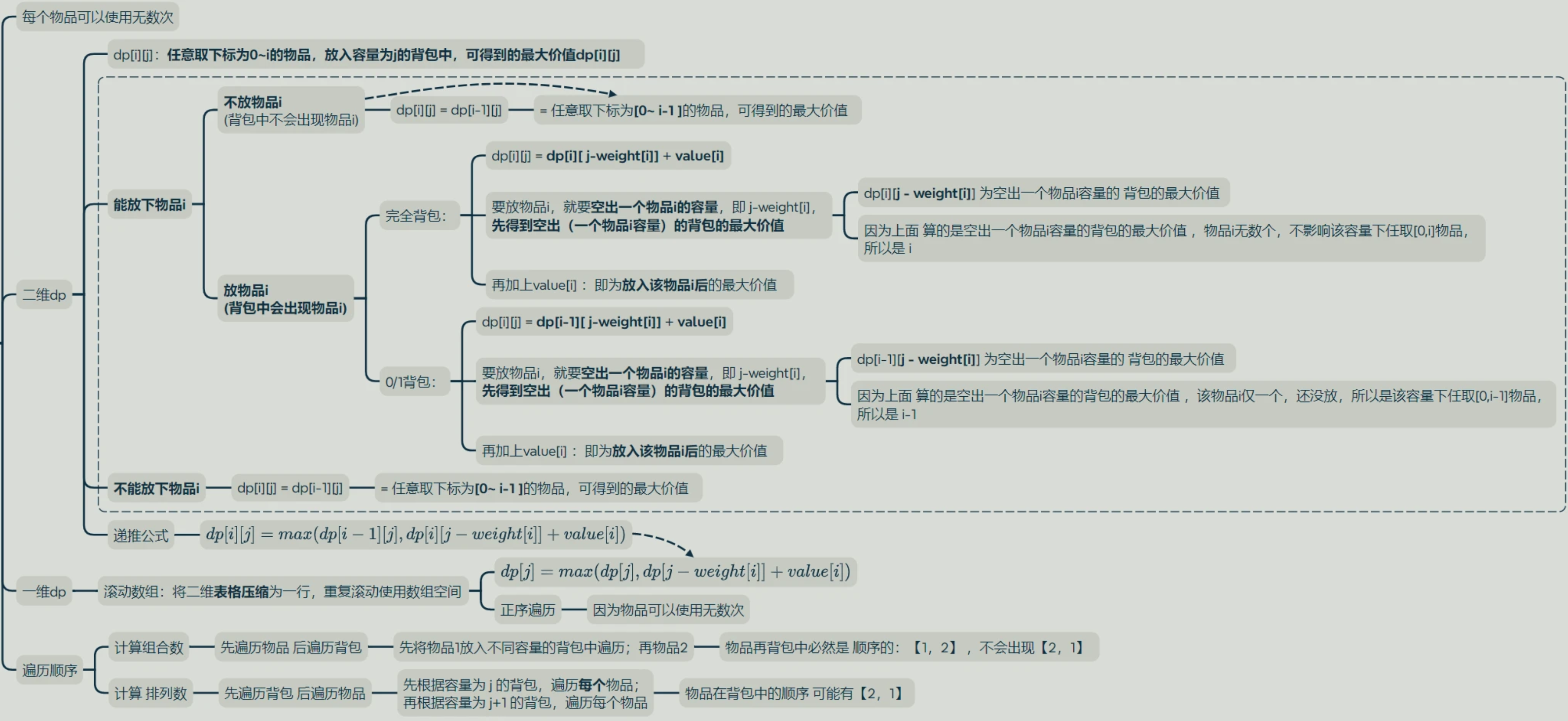 dp[i][j] 表示从下标为[0-i]的物品,每个物品可以取无限次,放进容量为j的背包,价值总和最大是多少。