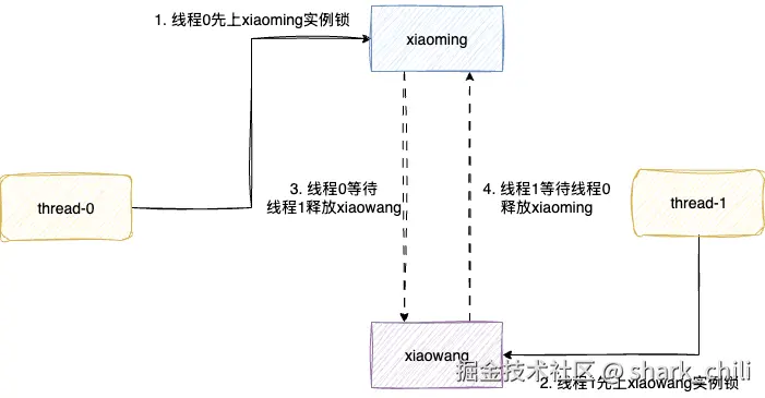 transfer调用 - 小明的转账函数先对自己上锁,然后尝试锁住小王实例