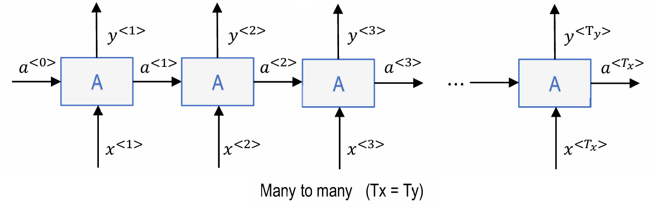 a ⟨ t ⟩ = tanh ( ( W a x W a a ) ( x ⟨ t ⟩ a ⟨ t − 1 ⟩ ) + b a ) = tanh ( W a x x ⟨ t ⟩ + W a a a ⟨ t − 1 ⟩ + b a ) \begin{align*} a^{\langle t \rangle} &= \tanh\left( \begin{pmatrix} W_{ax} & W_{aa} \end{pmatrix} \begin{pmatrix} x^{\langle t \rangle} \\ a^{\langle t-1 \rangle} \end{pmatrix} + b_a \right) \\ &= \tanh( W_{ax} x^{\langle t \rangle} + W_{aa} a^{\langle t-1 \rangle} + b_a ) \end{align*} a⟨t⟩=tanh((WaxWaa)(x⟨t⟩a⟨t−1⟩)+ba)=tanh(Waxx⟨t⟩+Waaa⟨t−1⟩+ba)