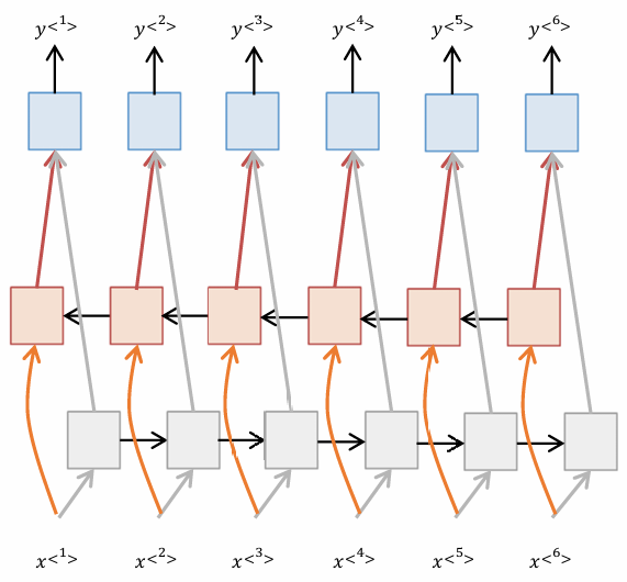 y ^ ⟨ t ⟩ = g 2 ( W y a a ⟨ t ⟩ + b y ) \hat{y}^{\langle t \rangle} = g_2( W_{ya} a^{\langle t \rangle} + b_y ) y^⟨t⟩=g2(Wyaa⟨t⟩+by)