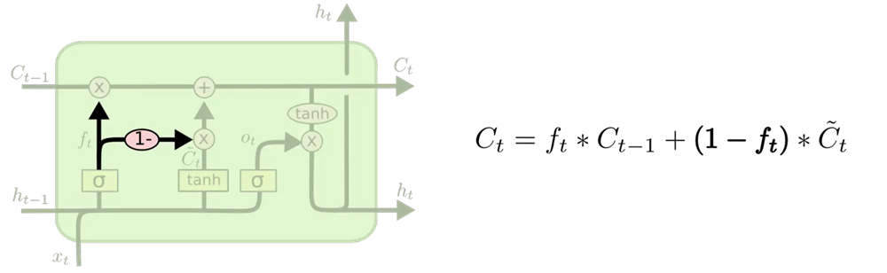 -> 只在要用新内容( f t f_t ft)替换旧内容时, 才进行遗忘( 1 − f t 1-f_t 1−ft)操作