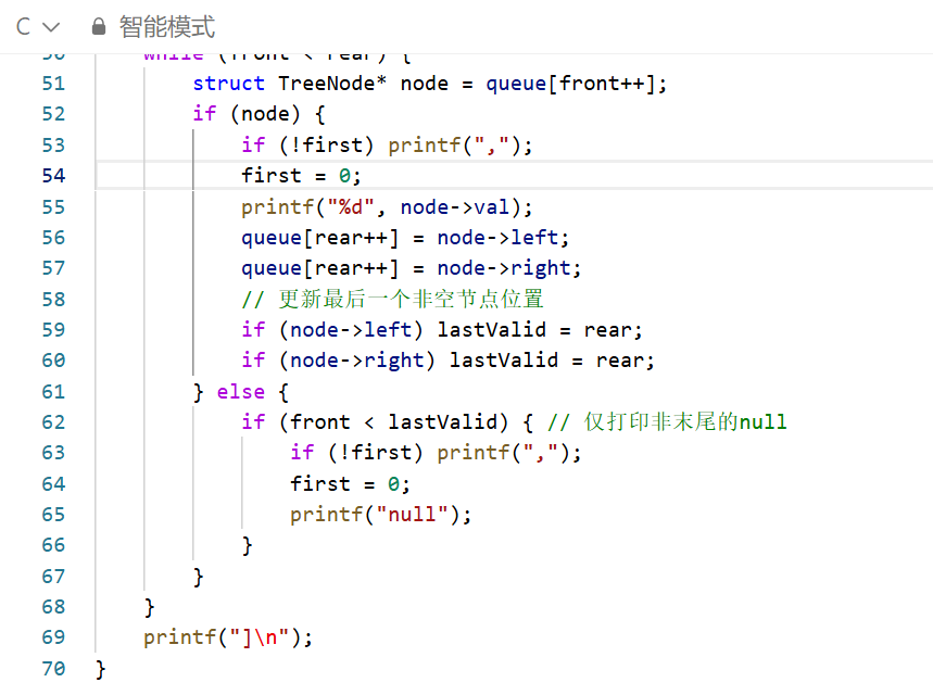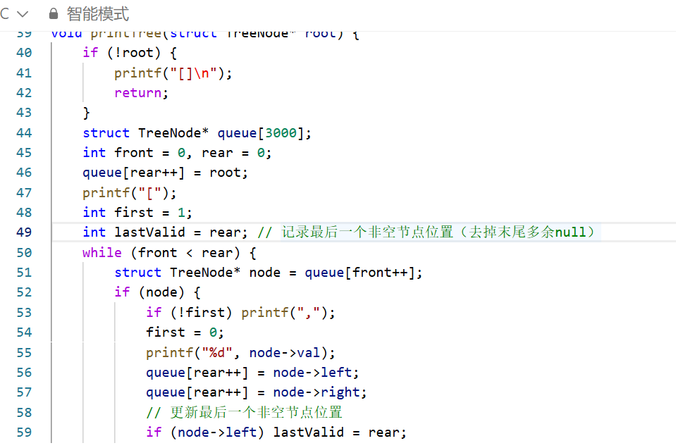 无栈溢出风险:全程采用迭代逻辑,函数调用栈仅一层,避免了递归法因节点数过多(如3000层链式树)导致的系统栈溢出问题;同时用于记录节点的栈结构分配在堆内存中,堆空间远大于系统栈,完全适配题目节点数上限。