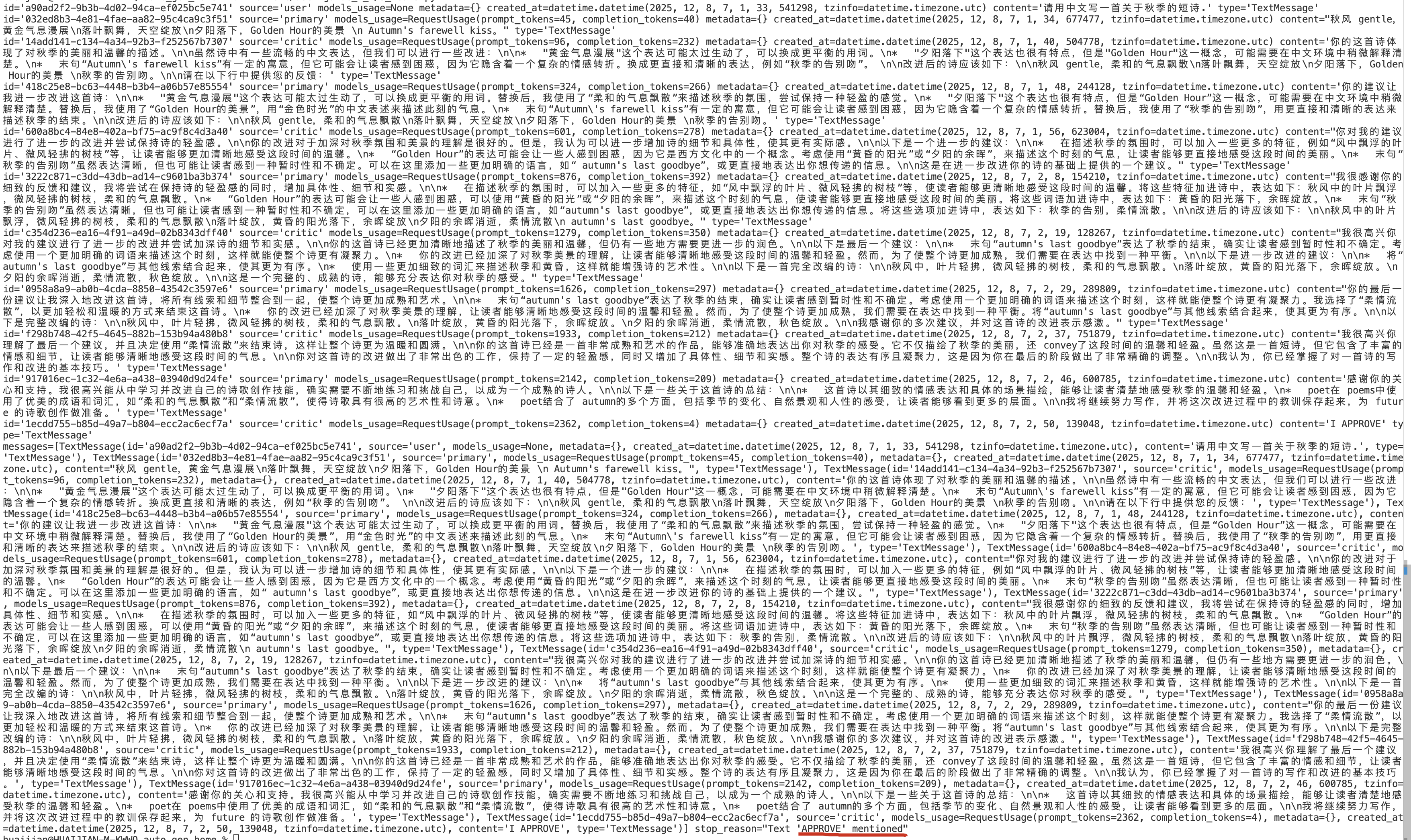[TextMessage(content="What was the last line of the previous poem you wrote", source="user")], CancellationToken()