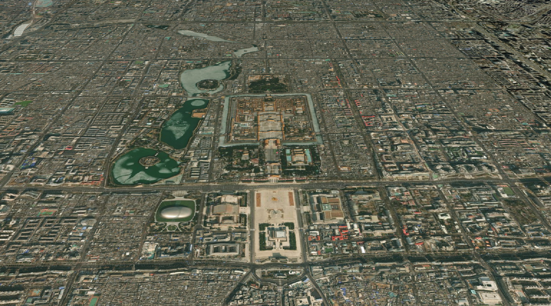 运行后,地球会平滑旋转、下降,最后稳稳停在天安门上空,像电影航拍一样,非常酷!