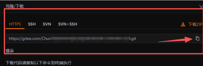 每个团队成员首先需要从远程仓库克隆代码到他们的本地计算机。可以从gitee上获取克隆命令: