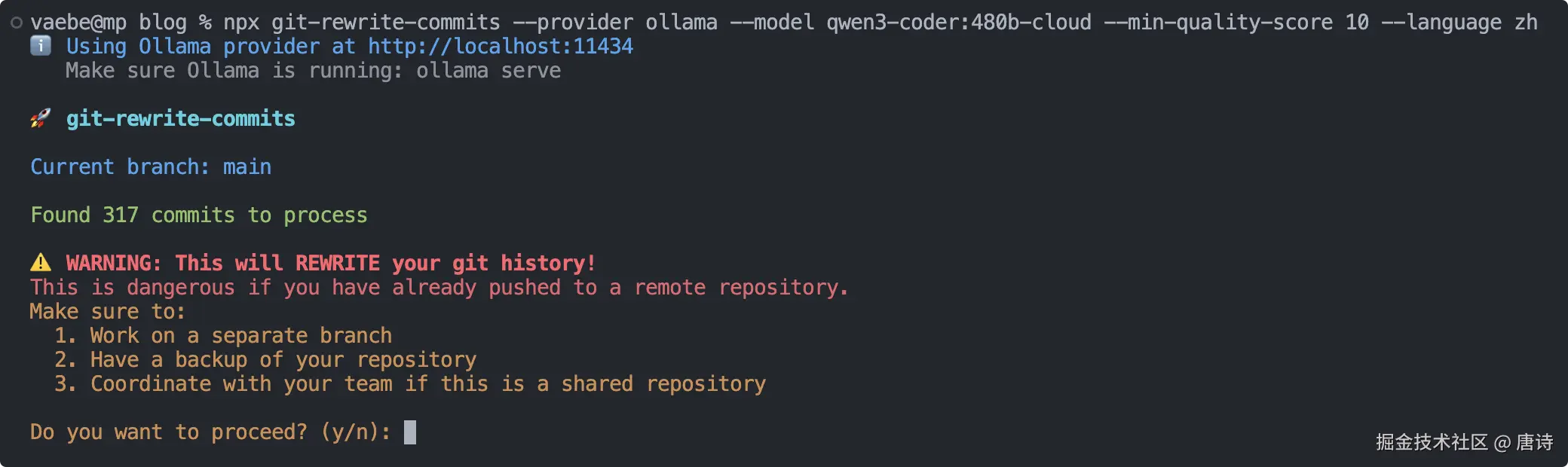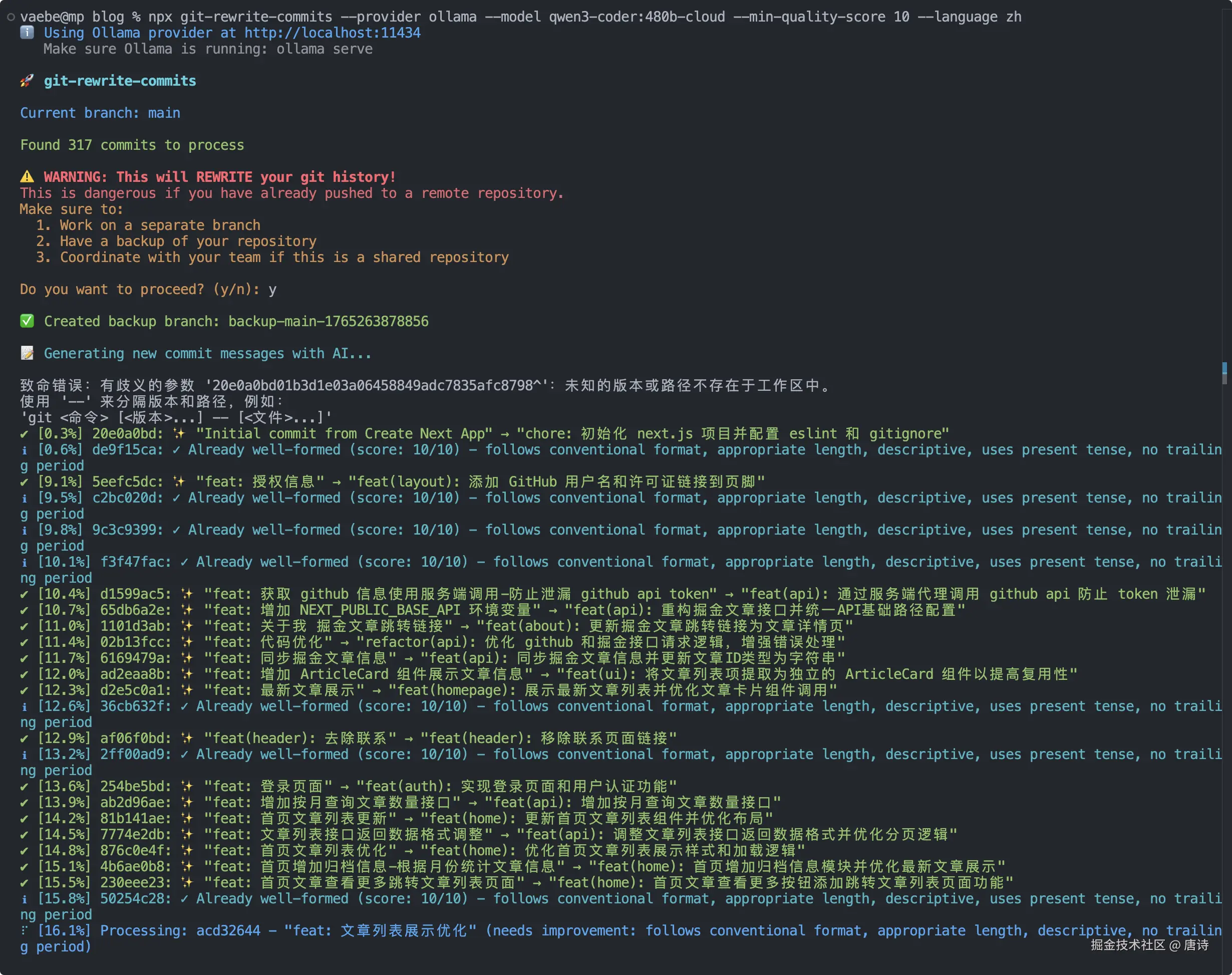 npx git-rewrite-commits --provider ollama --model qwen3-coder:480b-cloud --min-quality-score 10 --language zh --verbose