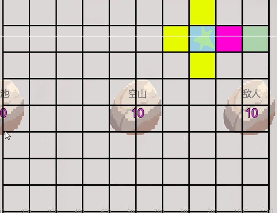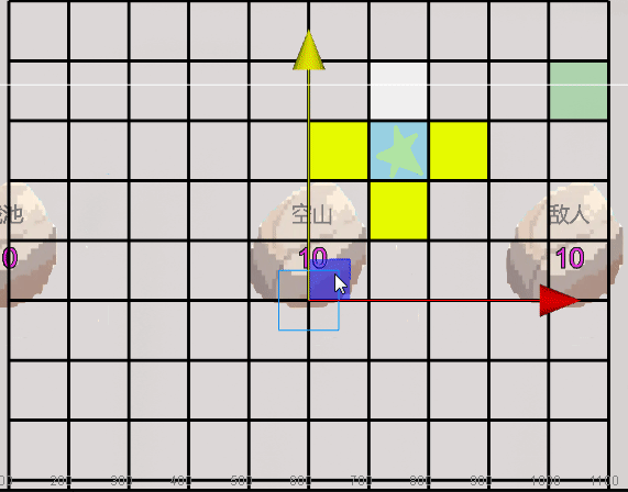 这里蓝色格子是角色起点 绿色是目的地 四周黄色是准备走的格子