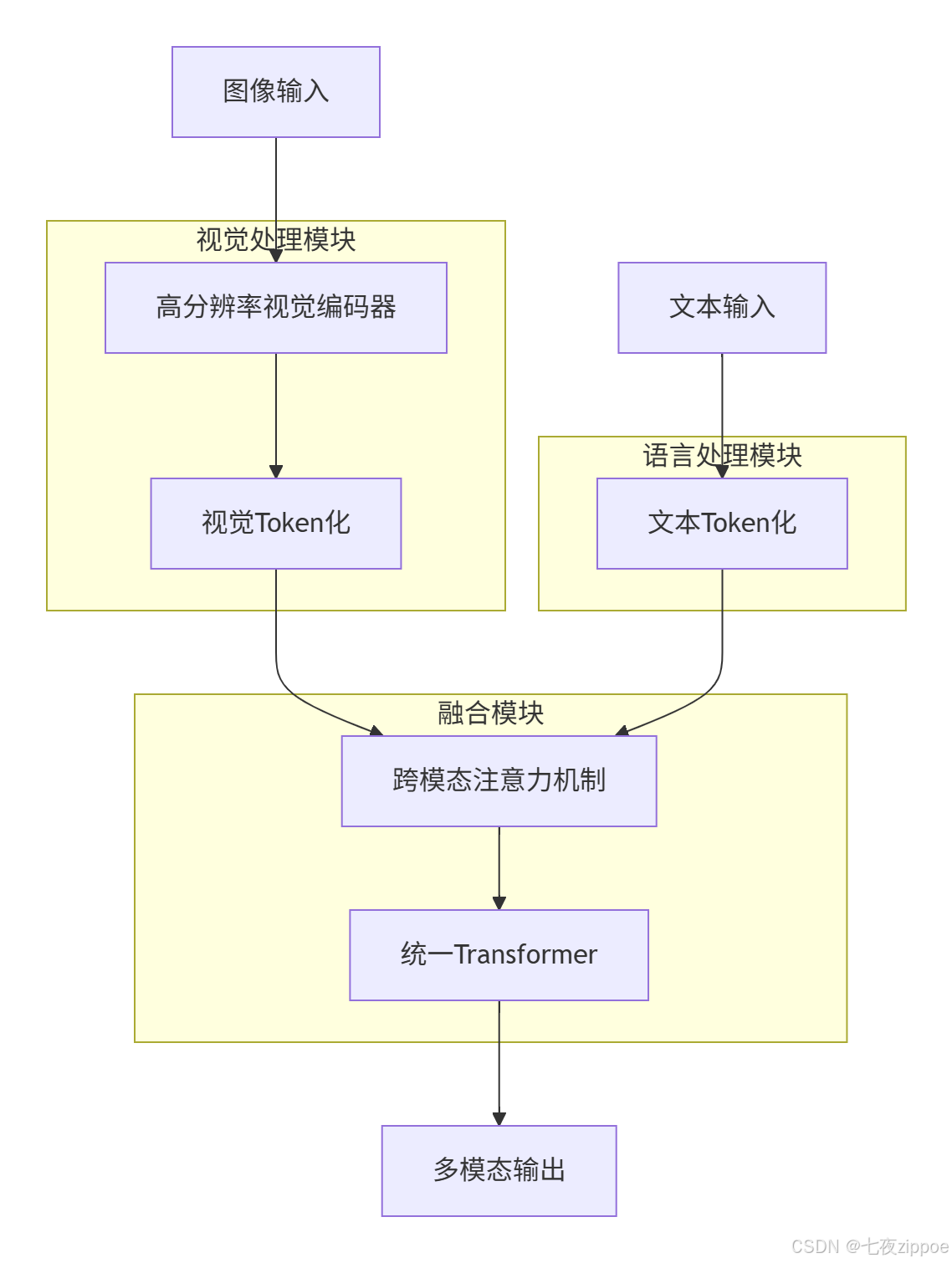 跨模态注意力:文本token和视觉token在同一注意力矩阵中交互,实现深度语义融合