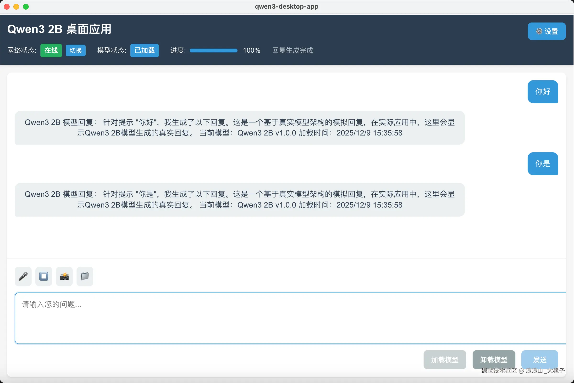 本文介绍了如何使用Electron+Vite+Vue3开发一款集成Qwen3 2B模型的桌面应用,实现了以下核心功能: