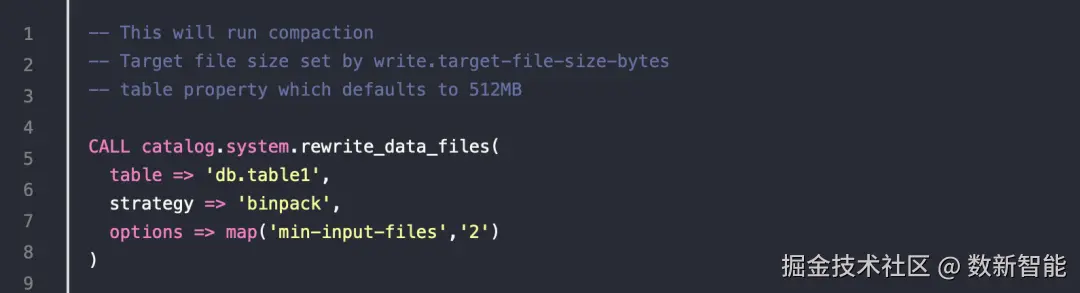 - 使用 rewriteDataFiles procedure 来做压缩,可以选择压缩的文件,以及期望的结果大小