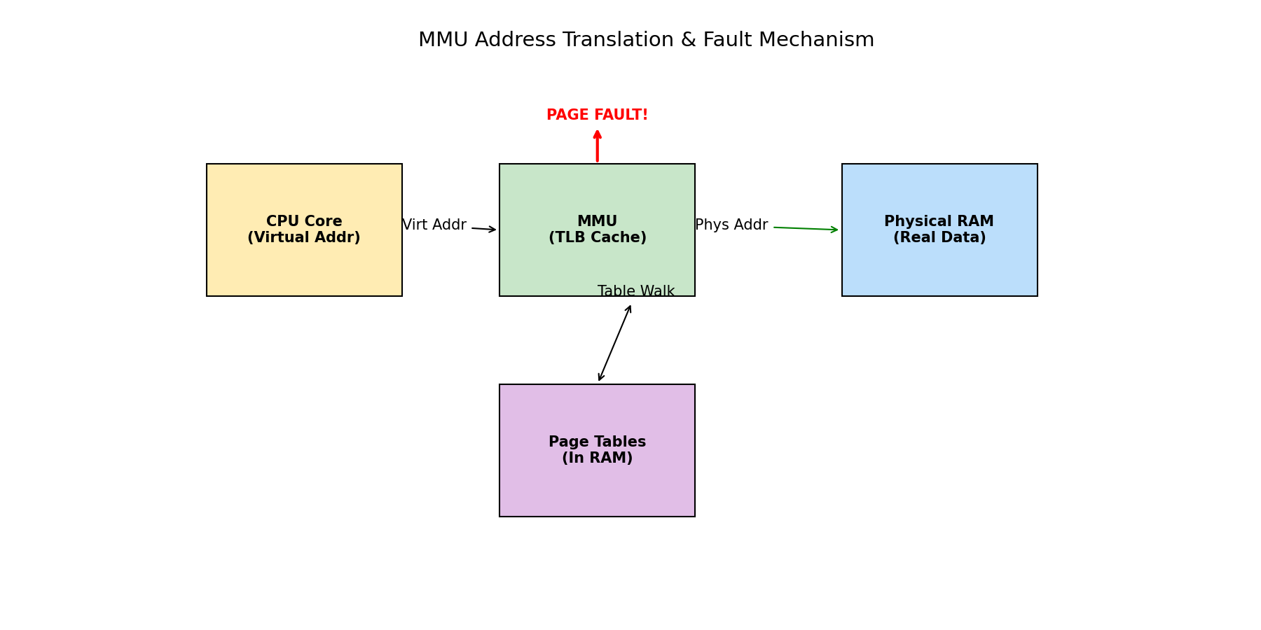虚拟页 -> 物理页的对应关系及权限(RWX)。 - TLB (Translation Lookaside Buffer): MMU 的高速缓存,加速地址转换。