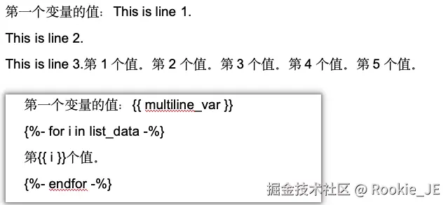 Jinja2 标签(如 {% ... %} {{ ... }})默认会保留标签前后的换行 / 空白字符,而 {%- 和 -%} 是「空白控制符」,用于合并标签与前后行的文本,消除多余空白。 举 例: