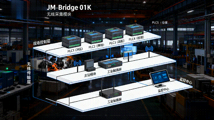 跨区域设备联动:适用于厂房内不同区域设备的数据互通与集中控制,无需复杂布线即可实现协同作业。