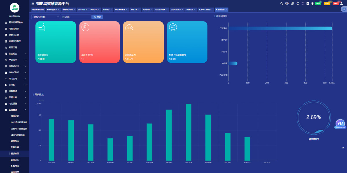 3.碳排管理:建立完善的碳核算体系,实现碳排放监测、报告与履约管理,支持碳资产管理;