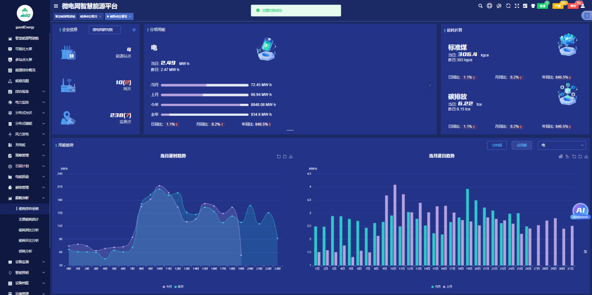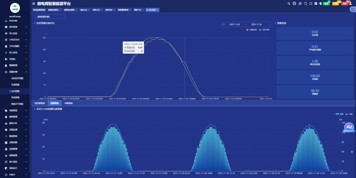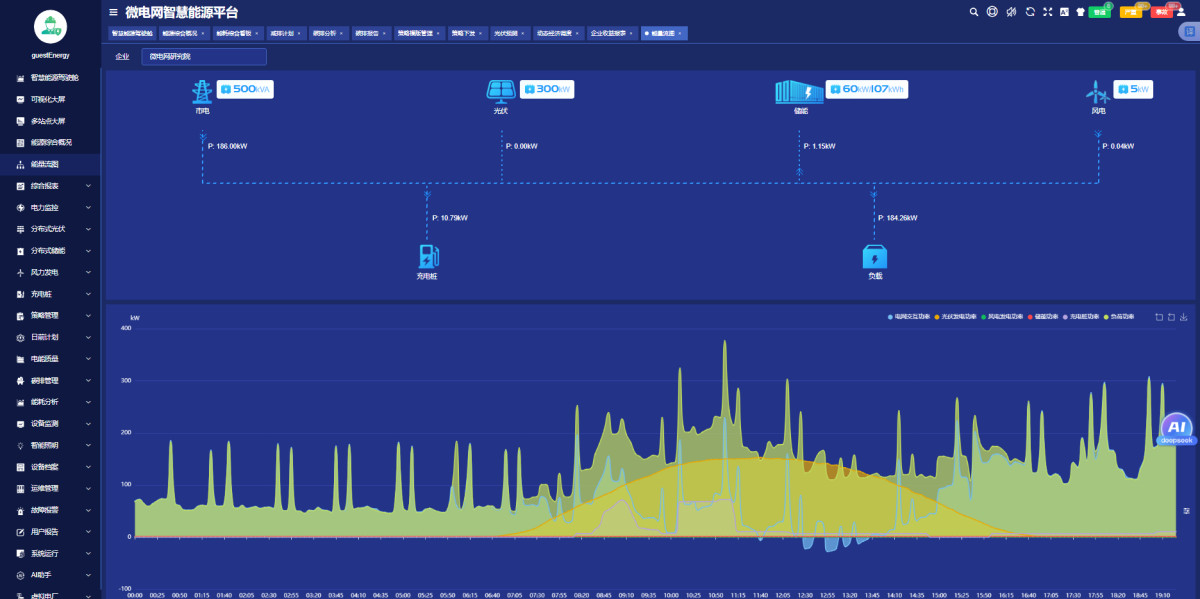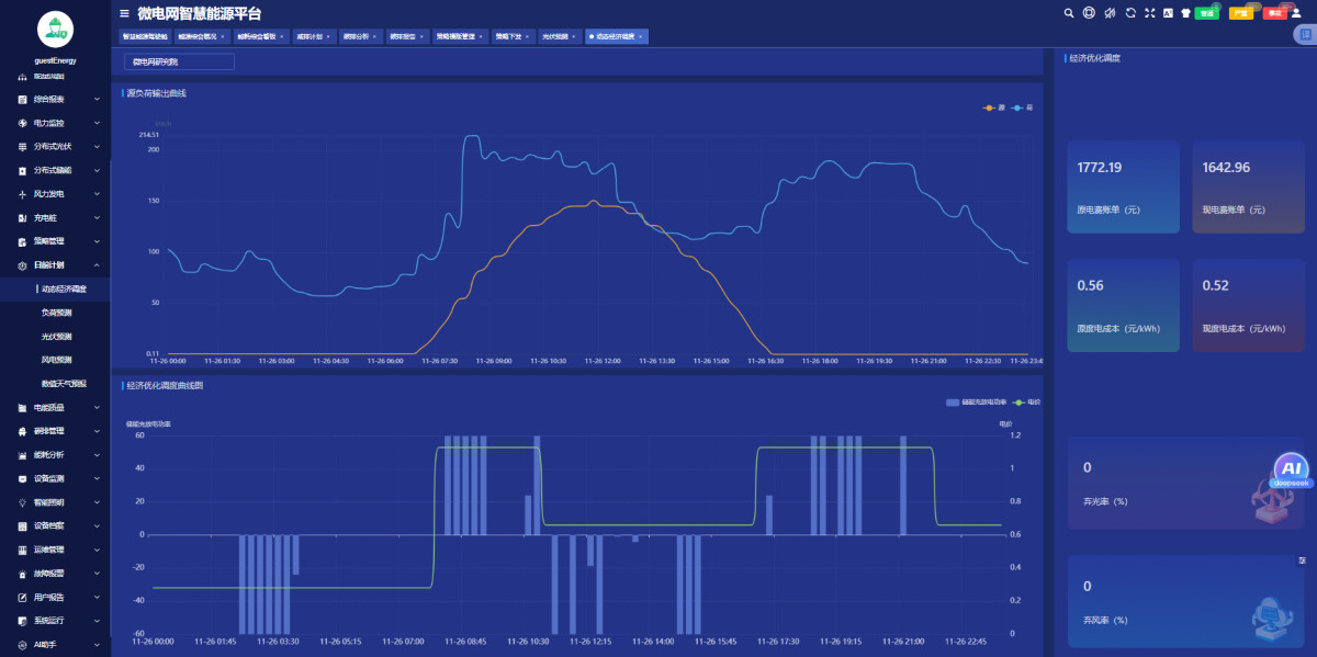 4.智能优化:基于AI算法实现发电与负荷预测,构建微电网经济模型,实现削峰填谷与需量控制;