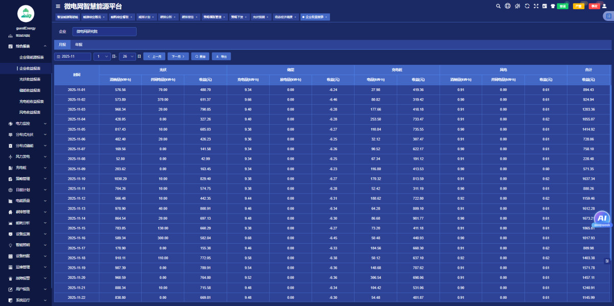 经济运营:提供新能源收益分析、储能调峰、充电桩运营等多维度收益统计,最大化能源资产价值。