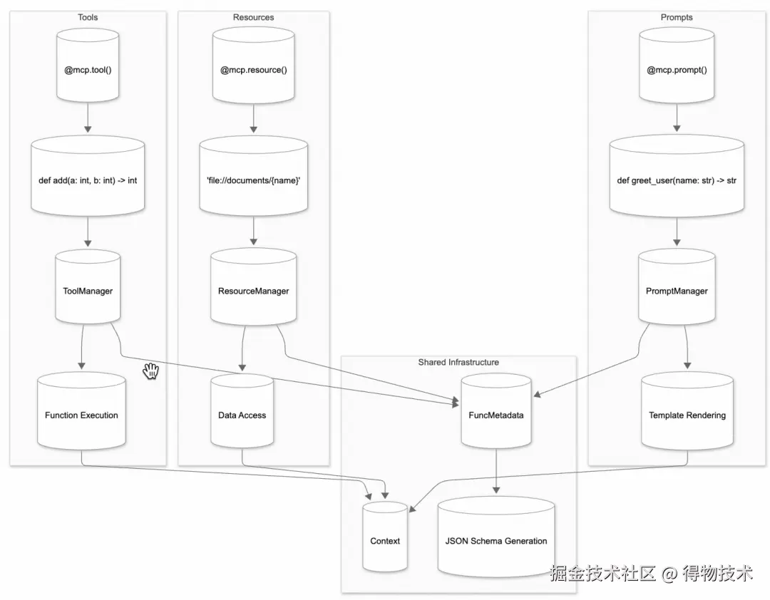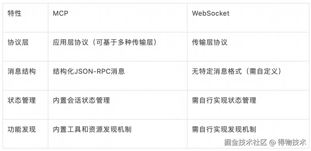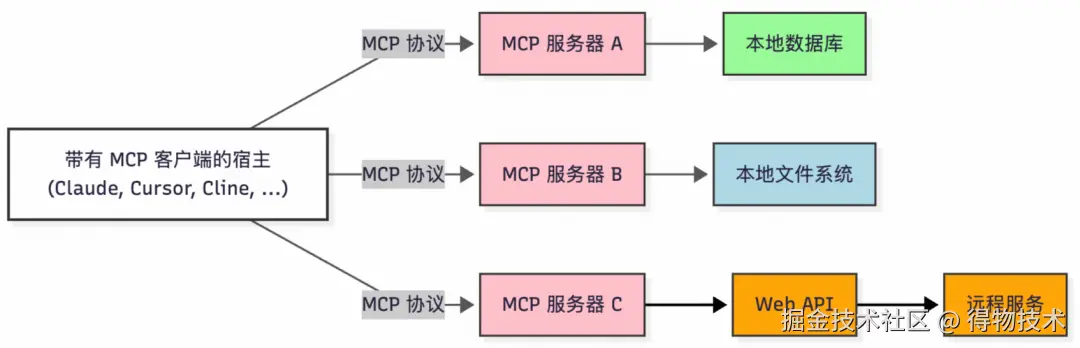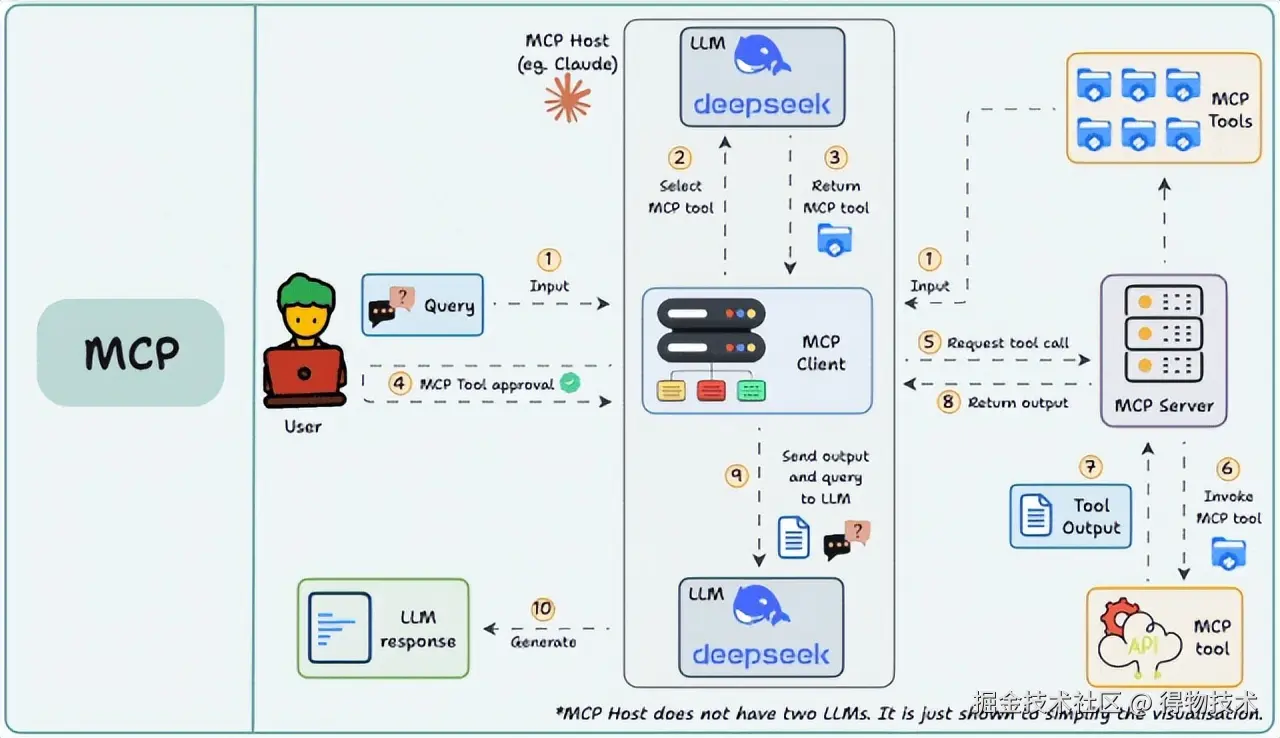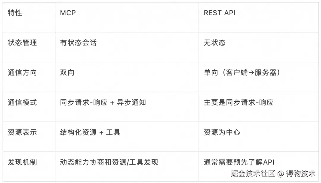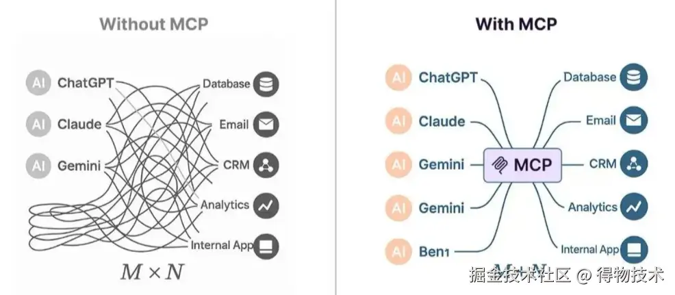 1\] 一文带你 "看见" MCP 的过程,彻底理解 MCP 的概念([developer.aliyun.com/article/166...](https://link.juejin.cn?target=https%3A%2F%2Fdeveloper.aliyun.com%2Farticle%2F1665090%25EF%25BC%2589 "https://developer.aliyun.com/article/1665090%EF%BC%89") \[2\] 100行代码讲透MCP原理([ai.programnotes.cn/p/100%E8%A1...](https://link.juejin.cn?target=https%3A%2F%2Fai.programnotes.cn%2Fp%2F100%25E8%25A1%258C%25E4%25BB%25A3%25E7%25A0%2581%25E8%25AE%25B2%25E9%2580%258Fmcp%25E5%258E%259F%25E7%2590%2586%2F%25EF%25BC%2589 "https://ai.programnotes.cn/p/100%E8%A1%8C%E4%BB%A3%E7%A0%81%E8%AE%B2%E9%80%8Fmcp%E5%8E%9F%E7%90%86/%EF%BC%89") ### 往期回顾 1. 项目性能优化实践:深入FMP算法原理探索|得物技术 2. Dragonboat统一存储LogDB实现分析|得物技术 3. 从数字到版面:得物数据产品里数字格式化的那些事 4. 一文解析得物自建 Redis 最新技术演进 5. Golang HTTP请求超时与重试:构建高可靠网络请求|得物技术 ### 文 /少晖、洪兆 关注得物技术,每周更新技术干货 要是觉得文章对你有帮助的话,欢迎评论转发点赞~ 未经得物技术许可严禁转载,否则依法追究法律责任。