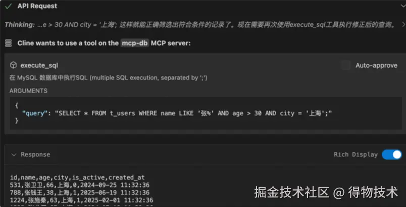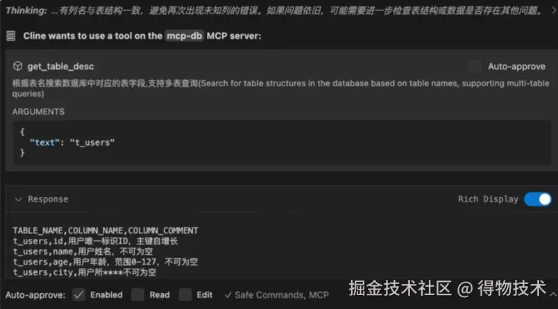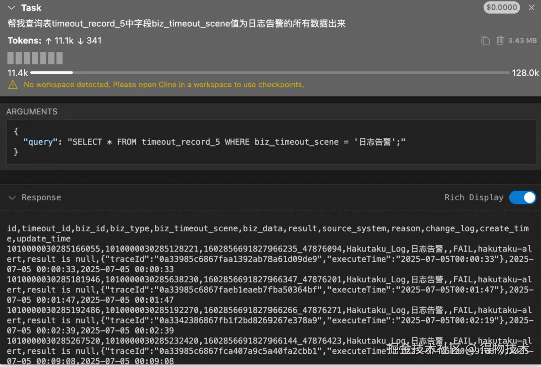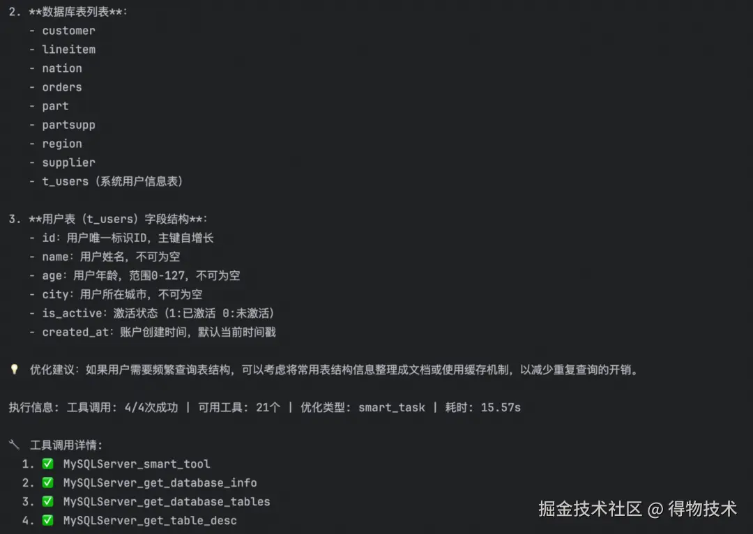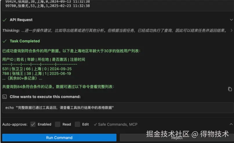 OK,现在看起来就对多了,开始执行工具运行指令并返回结果:
