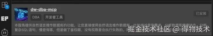 我们在 MCP 应用市场中上架了一个版本的 DW-DBA-MCP 服务,在 VSCode 中安装 EP-Copilot 插件即可安装使用该服务。