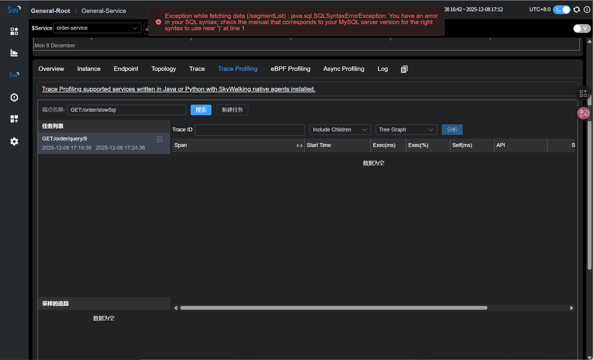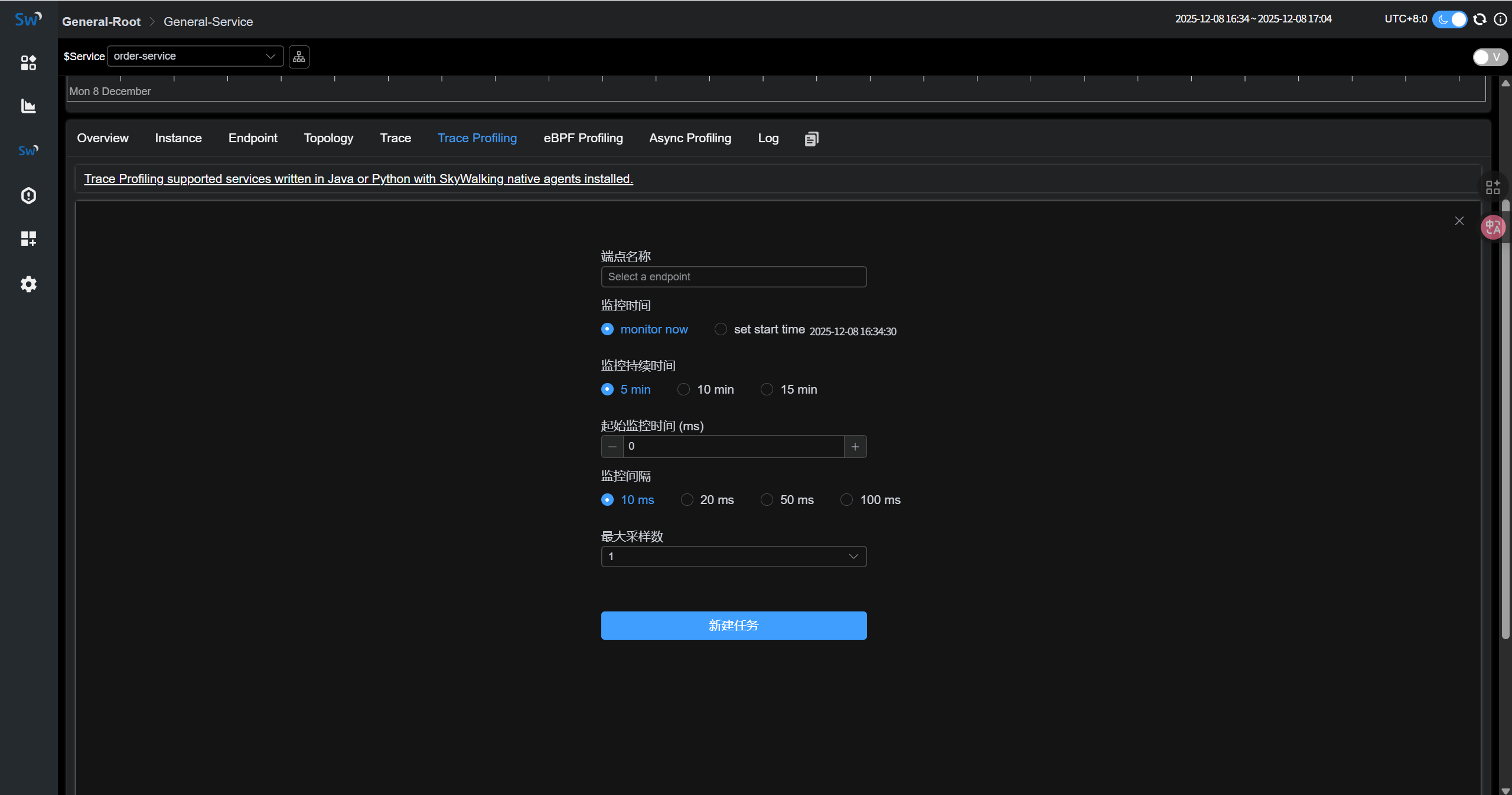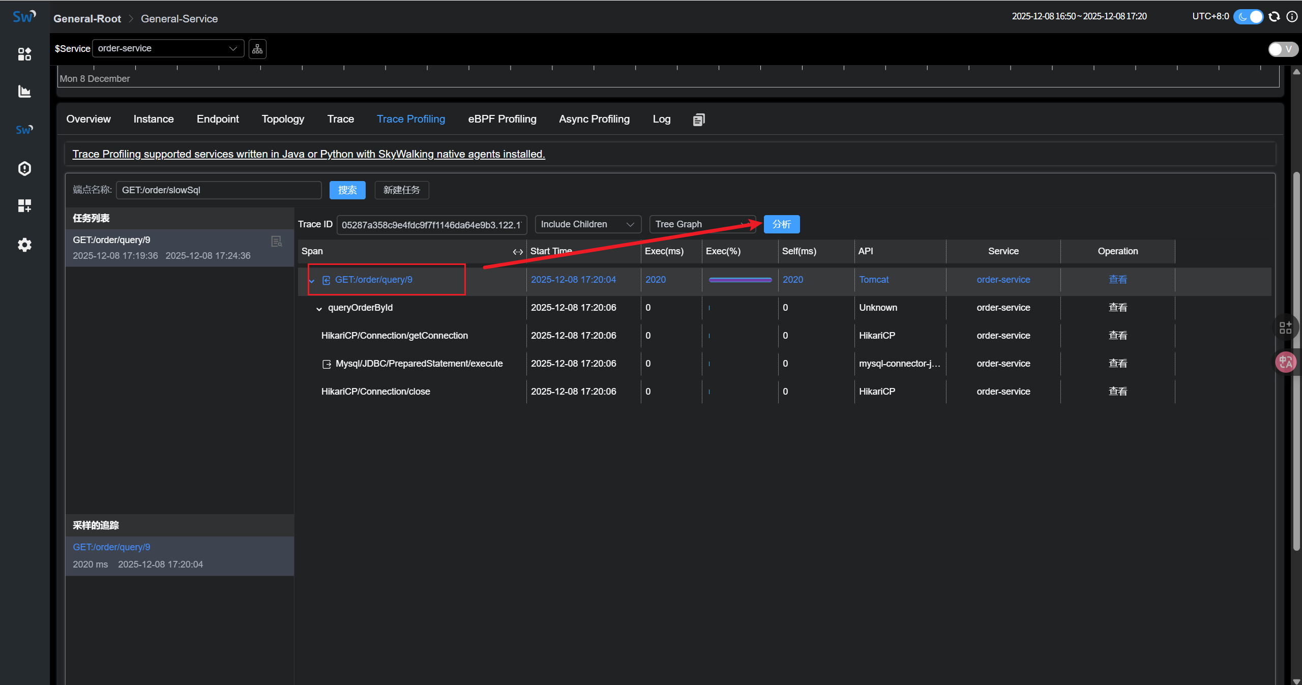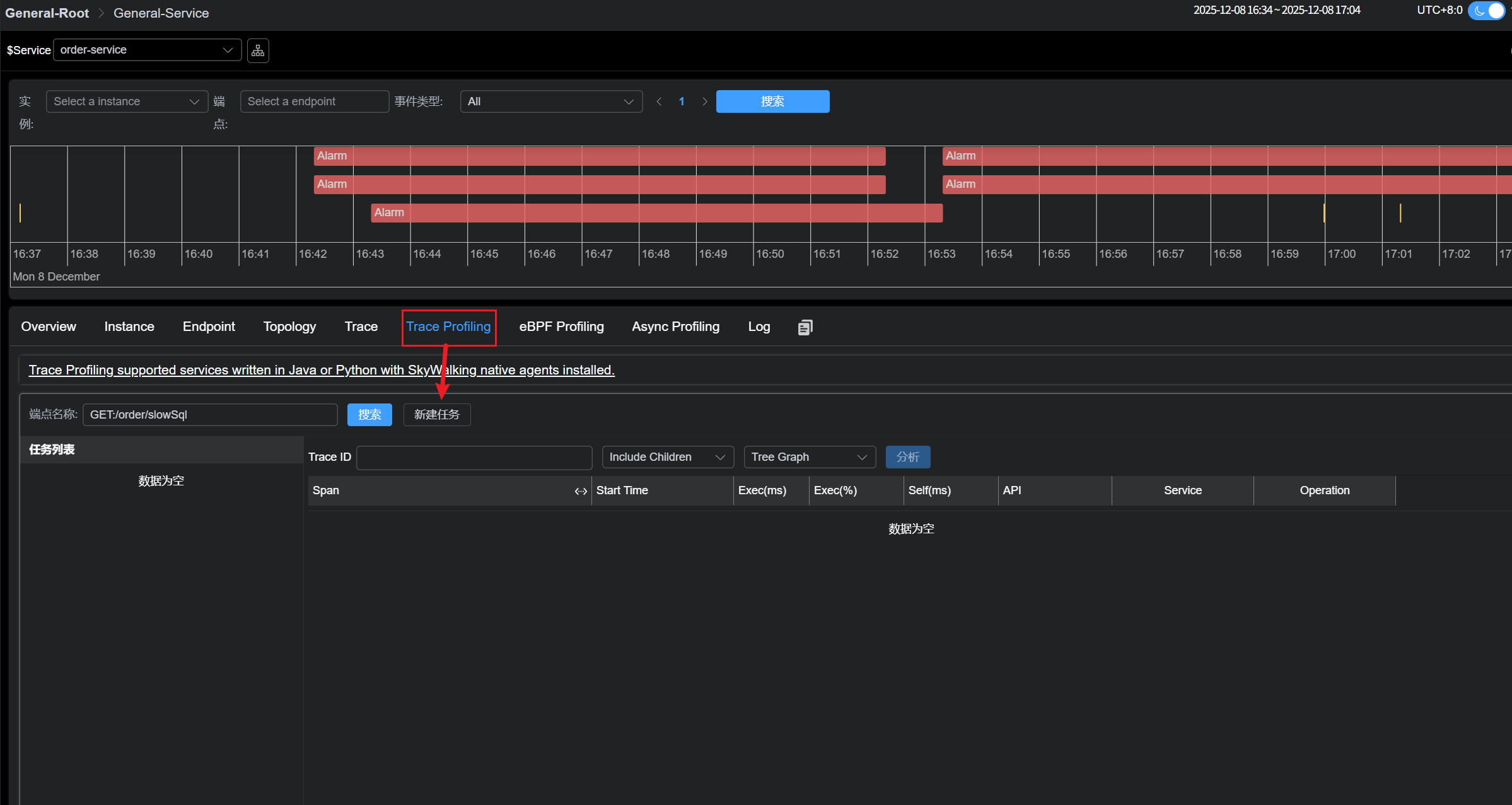 前面只知道哪个端点很耗时,使用性能剖析,就可以精确到某一行代码的耗时多少,可以快速识别高耗时方法(如 慢SQL查询),定位 Trace 中具体 Span 的性能问题,针对性进行优化。