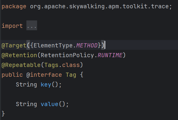 通过 @Tag 和 @Tags 可以在自定义链路追踪中附加关键业务或上下文信息的注解