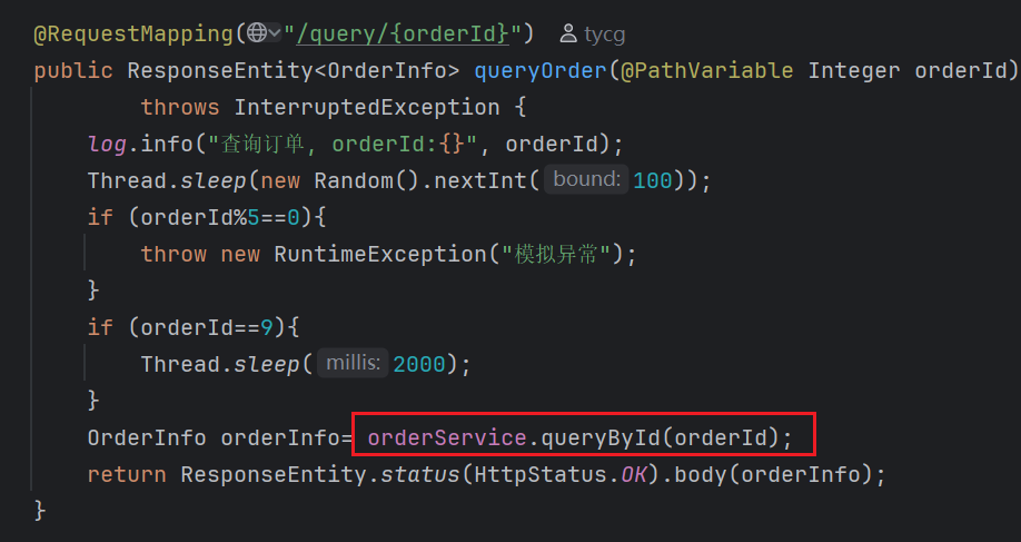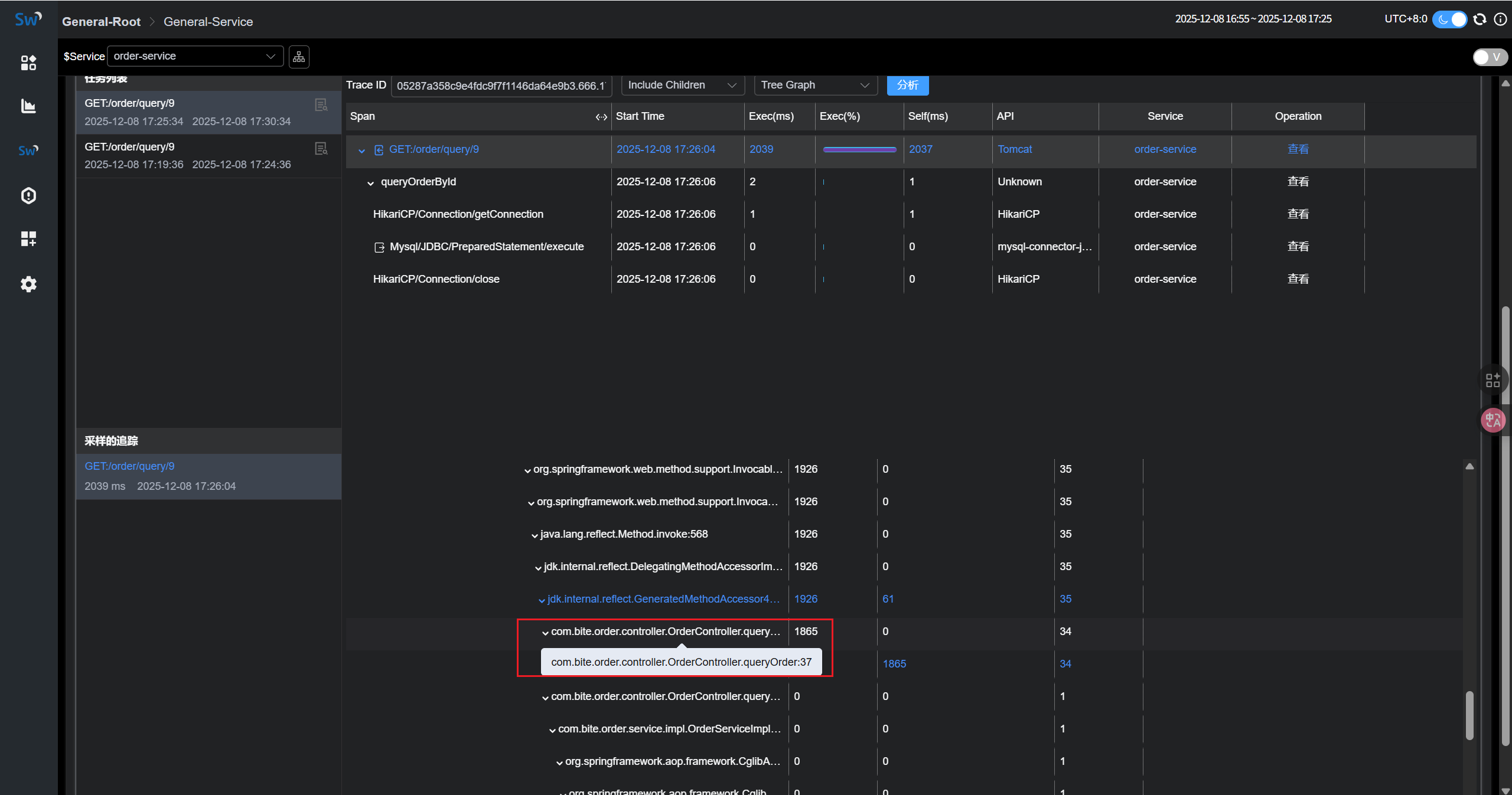 这里以该接口,调用的 orderService.queryById() 方法进行自定义追踪。