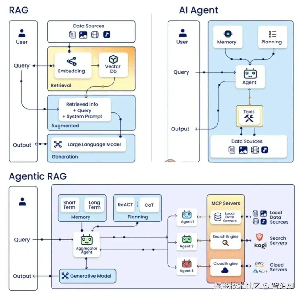 自主决策代理:通过Agent智能体动态选择检索策略,支持单方法或多方法组合调用(串行或并行)。