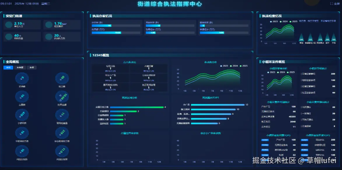 下面在使用免费工具和免费模型下实现真实的业务大屏页,看下多轮调教下AI生成的效果,并附上了对应的提示词 (如果有更好的提问方式,欢迎讨论交流)