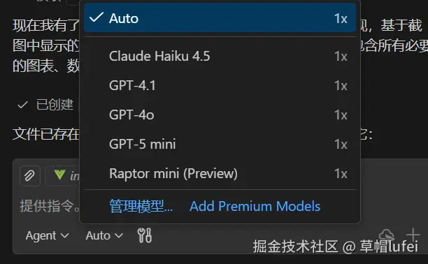 页面有了,该有的似乎都有,整体布局也有点那意思,使用 Agent 模式,模型 Auto,每一个细节方面还差的比较多