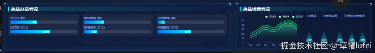 执法检查情况 中的 检查量、检查单类型、不合格检查事项 改成 全局概览中的 tab 效果