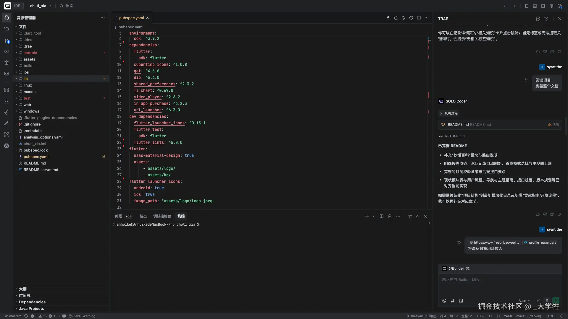 前端毫无争议的使用的是 Flutter,毕竟要是以后发行 Android 也是非常方便的,无需重新开发。再结合 Trae,我只需要在口头上指点指点,那是开发的又快又稳,非常的轻松加愉快。