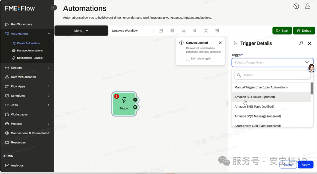 安宝特 FME FLOW 是FME 2大核心软件中的云端数据集成与自动化平台,专注于工作流管理与多源数据整合 ,可将在 FME Form Workbench 中设计的工作流部署到云端,实现数据的实时处理与自动化分发。