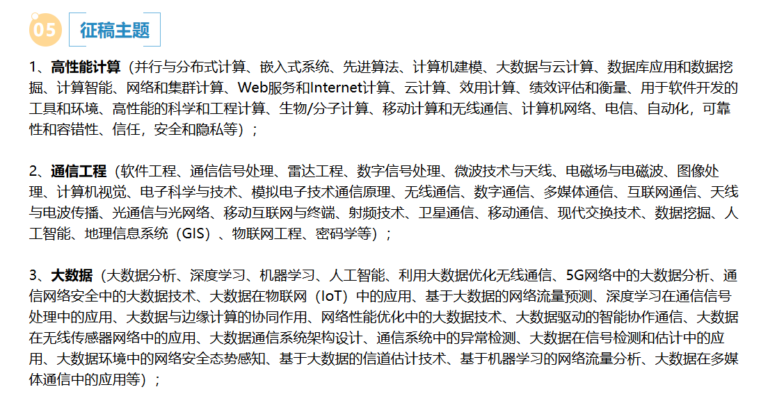 高性能计算、大数据与通信工程的交叉创新是 ICHBC 2025 的核心议题,也是数字基础设施升级的关键支撑。从技术实践来看,分布式并行计算解决了 "海量数据高效处理" 的核心问题,而 5G 信号的特征分析与质量评估则实现了 "通信数据价值挖掘" 的目标,两者共同构成了数字时代算力 - 数据 - 通信协同的核心能力。