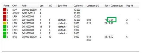 显示包含对应 EtherCAT 指令的周期性传输帧编号。一个 EtherCAT 传输帧可包含一条或多条 EtherCAT 指令。