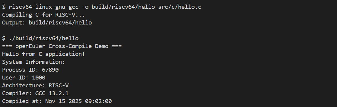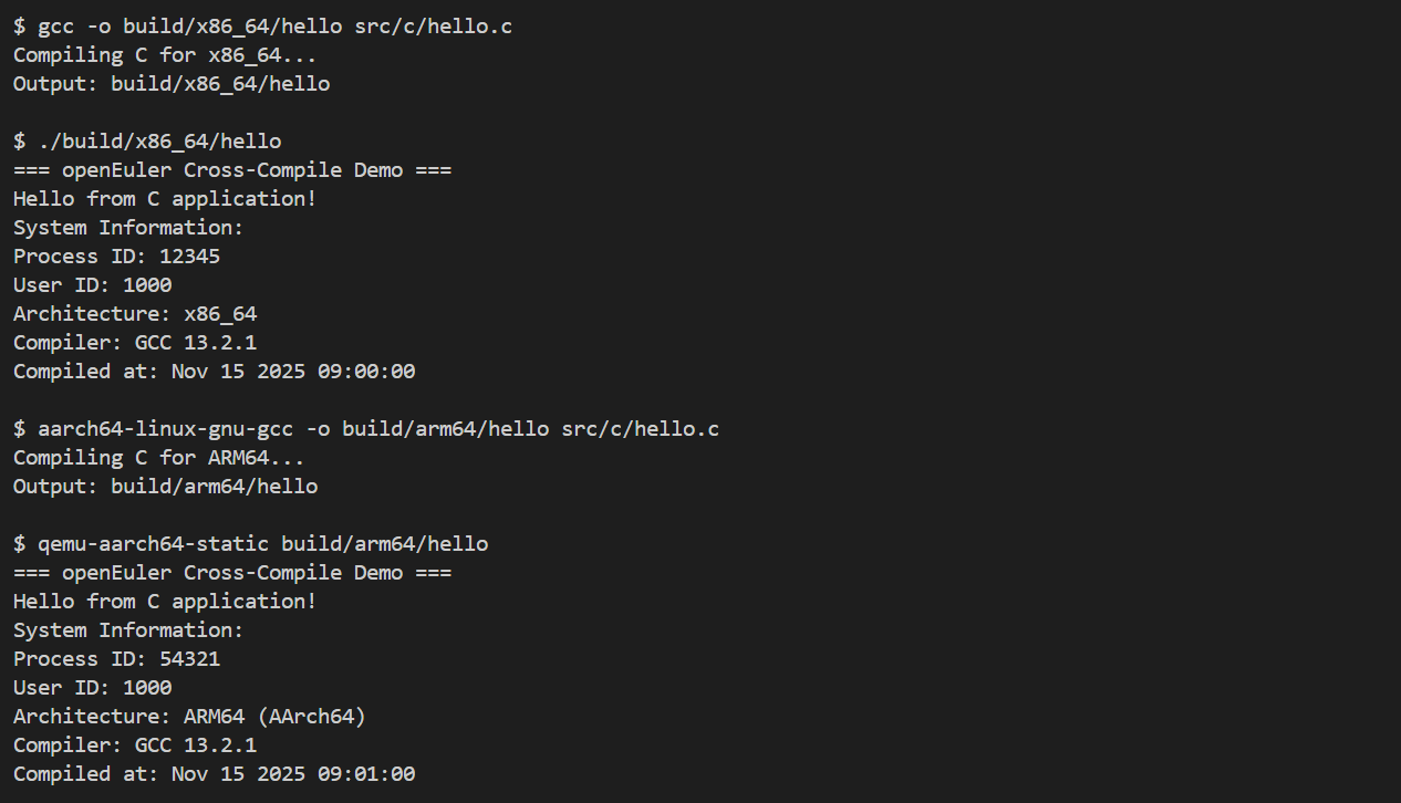 printf("=== openEuler Cross-Compile Demo ===\n");