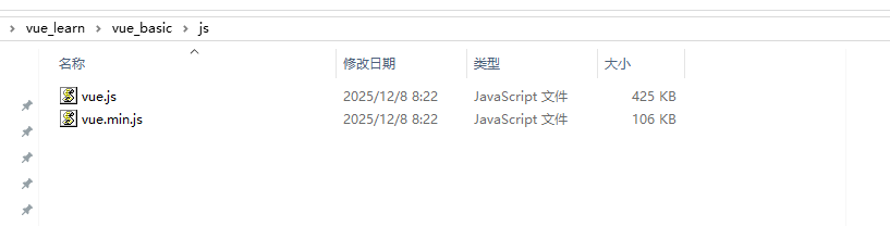 新建的js文件夹,里面放入我们下载的两个vue开发环境的文件。