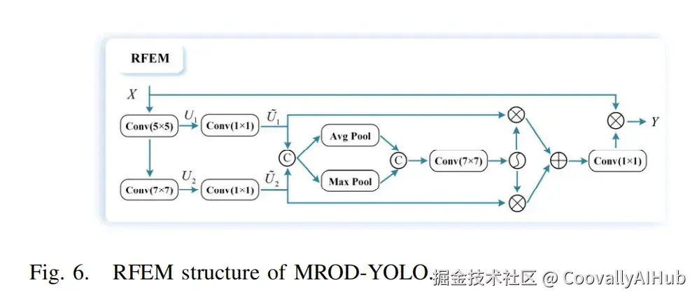 针对遥感图像中目标背景多变的特点,RFEM通过多尺度解耦深度卷积动态调整感受野: